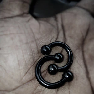 - Häufig wird runder Schmuck eingesetzt, z. B. ein Ball Closure Ring (BCR) oder ein Curved Barbell.